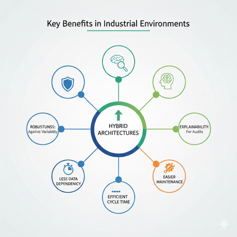 From ISR’s project experience, hybrid architectures provide clear advantages: increased robustness against process variability, reduced dependency on very large datasets, improved explainability for customers and audits, optimized cycle time and computational efficiency, and easier maintenance and long-term evolution.
