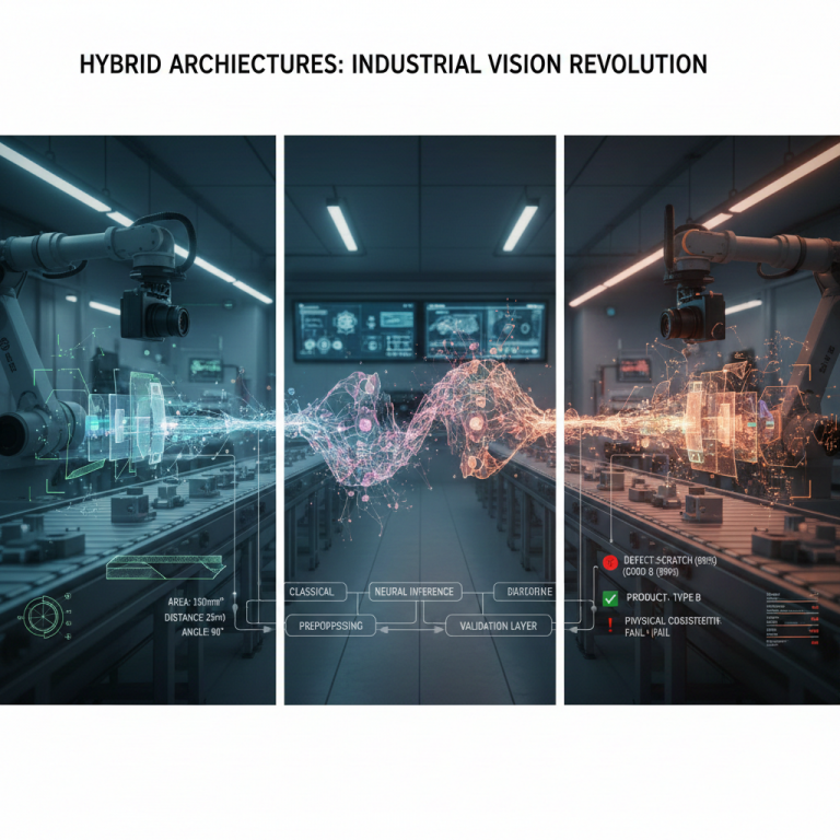 Hybrid architectures are not just an algorithmic choice, but a design philosophy. They require deep understanding of the industrial process, physical knowledge of products and materials, proper selection of sensors and illumination, and modular, maintainable software architectures. Artificial intelligence is treated as a tool, not as an end in itself.